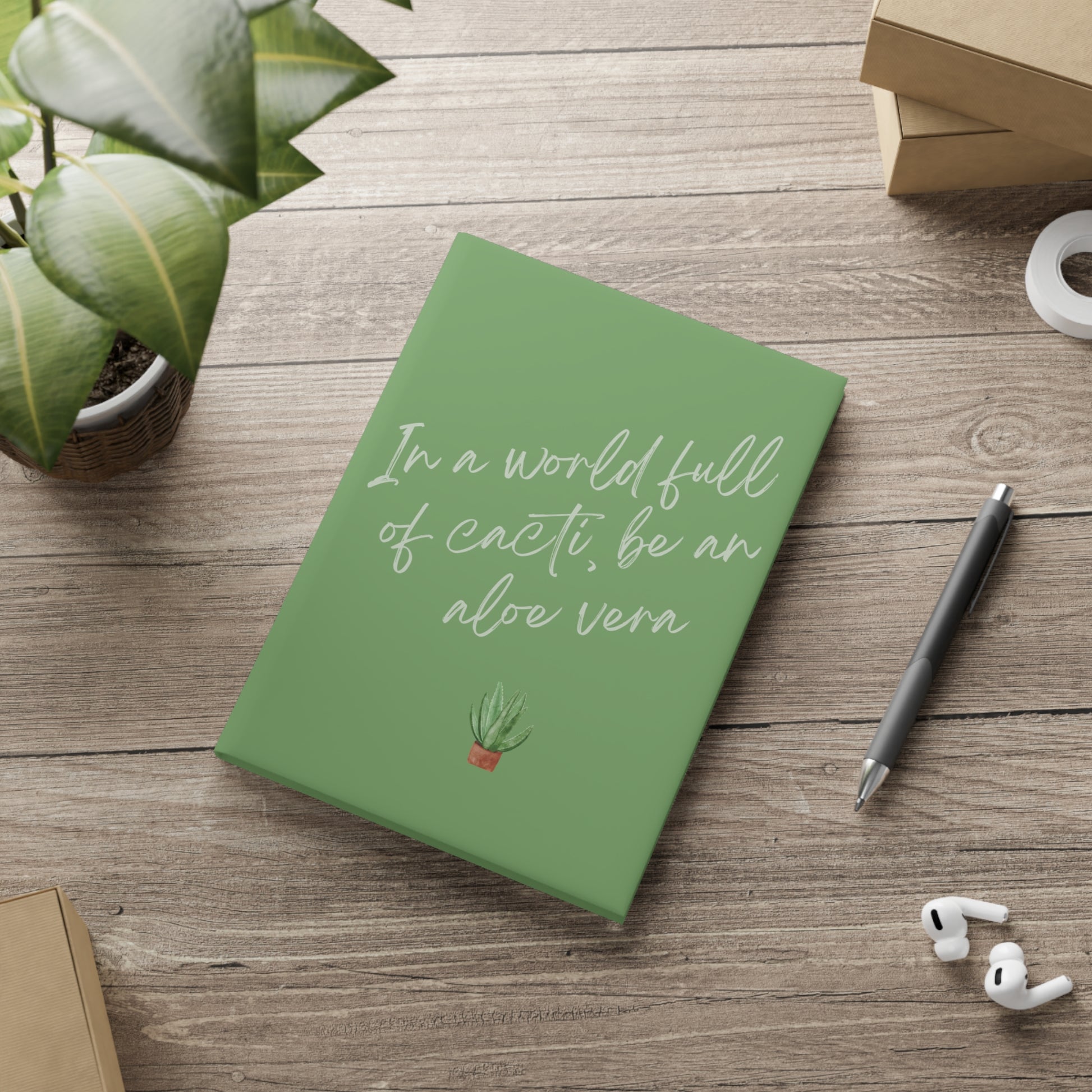 Inspirational Hardcover Notebook - "In a World Full of Cacti, Be an Aloe Vera"