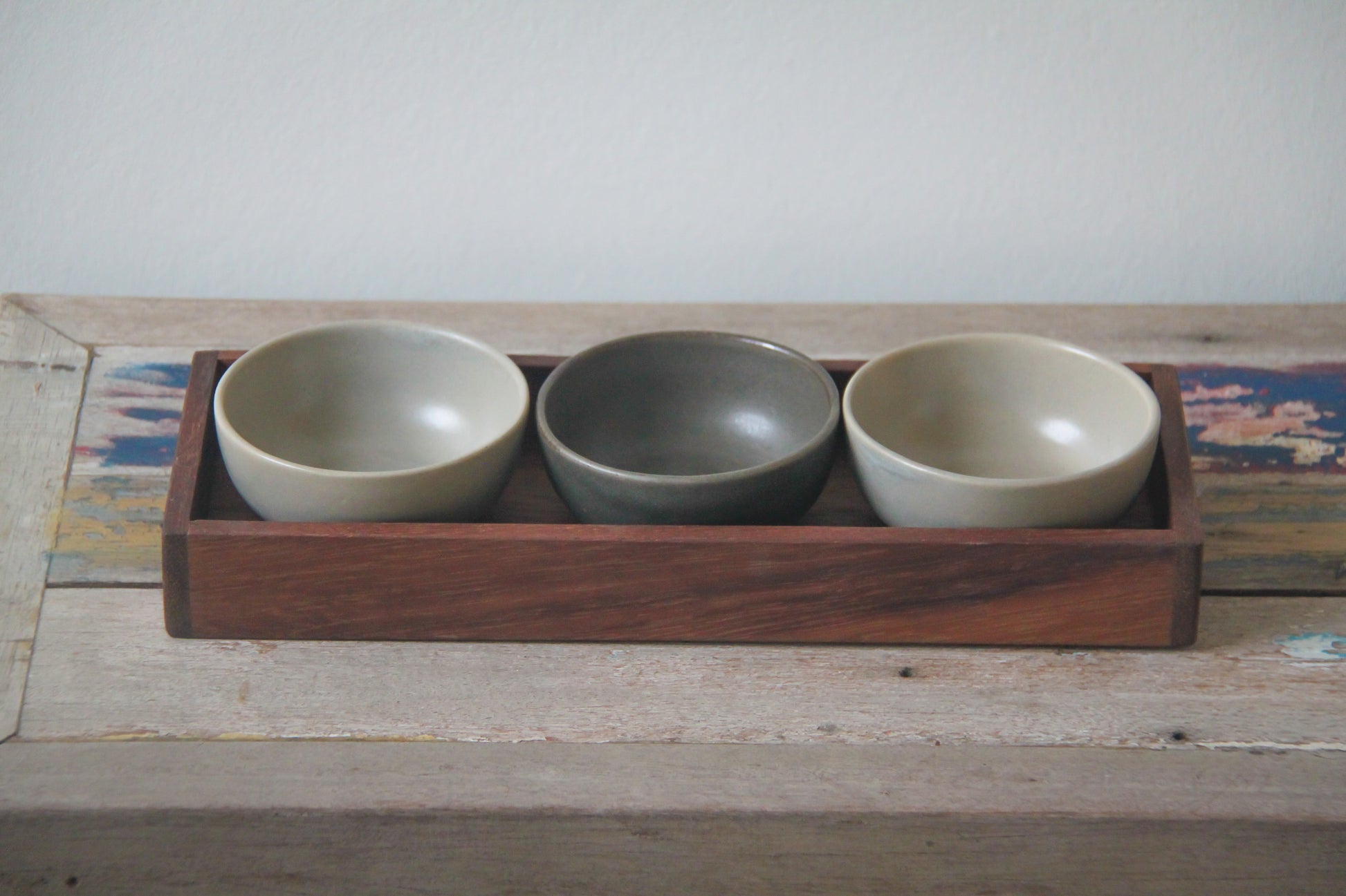serveerbakje met 3 kommetjes - combo mushroom/moss